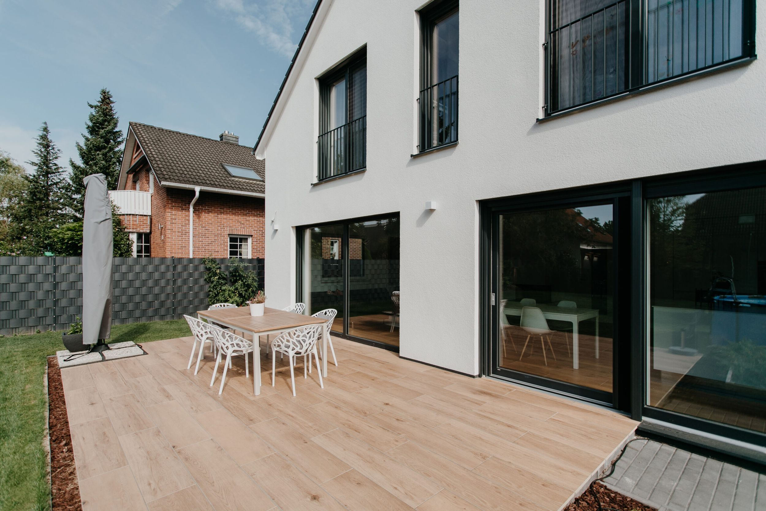 Ein Blickfang: Schickes Einfamilienhaus-Ensemble aus Holz
